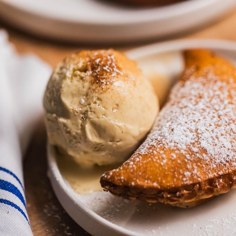 Soft pretzel bites, vanilla ice cream, caramel, chocolate, whipped cream